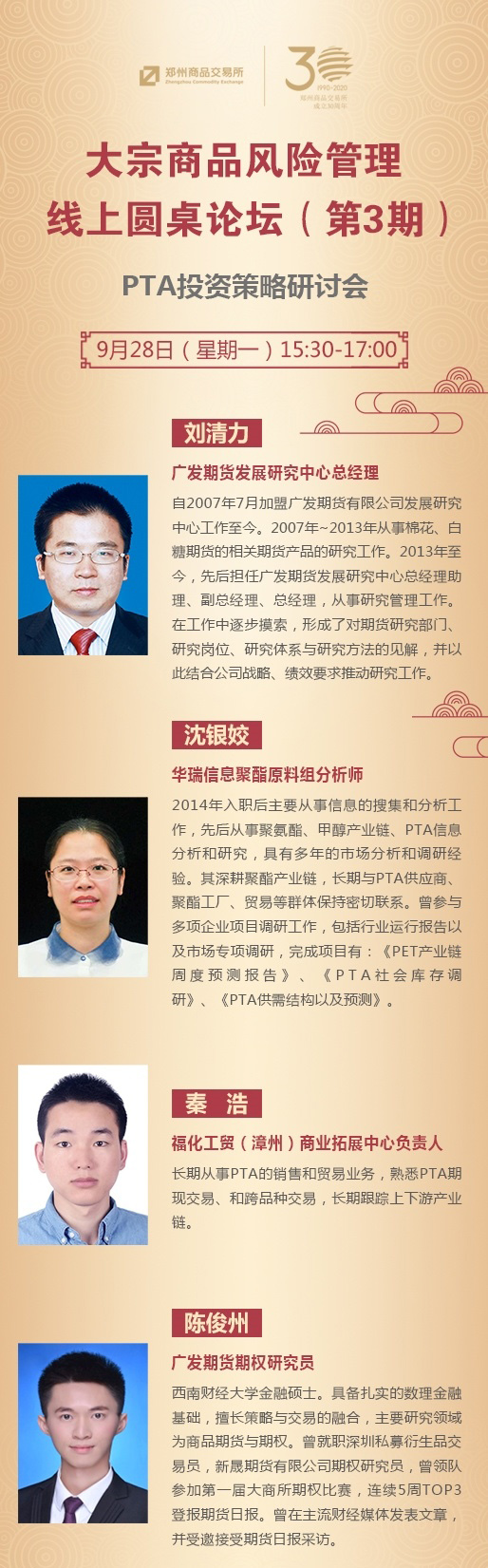 【郑商衍生品】大宗商品风险管理线上圆桌论坛(第3期)—PTA投资策略研讨会