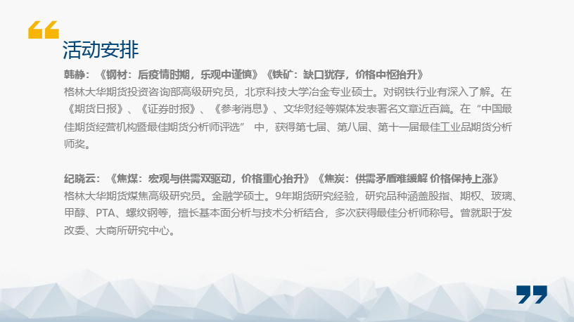 【免责声明】1、本视频所提供的分析建议所依据的信息,均来源于交易所、媒体和资讯公司等发布的公开资料或通过合法授权渠道向发布者取得的资讯,我们力求分析及建议内容的客观、公正,研究方法专业审谨,分析结论合理,但公司对信息来源的准确性和完整性不作任何保证,也不保证所依据的信息和建议不会发生任何变化。2、因研究分析意见存在一定的局限性,本视频所提供的分析和建议内容仅供参考,不构成对您的任何投资建议及入市依据。您应当自主做出交易决策,独自承担交易结果,据此入市者,我公司不承担任何责任。3、因互联网软硬件设备故障、失灵,不可抗力造成的全部或者部分视频中断、延迟、遗留、误导或造成的视频传输或存储上的错误,我公司均不承担责任。4、未经本公司授权、不得随意下载、复制、传播本视频及网页的所有材料和内容。5、如果您打开本页面或点击观看本视频及直接和间接使用上述资料,我们均视为您自愿接受并完全同意本声明。