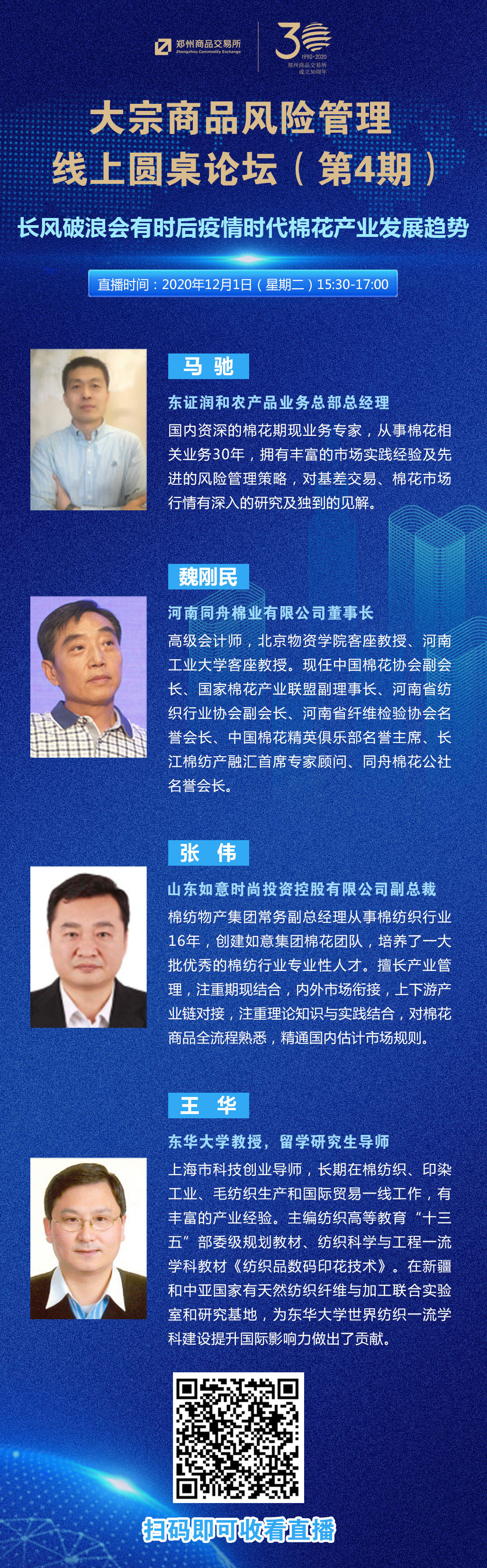 【郑商衍生品】大宗商品风险管理线上圆桌论坛(第四期)疫情时代棉花产业发展趋
