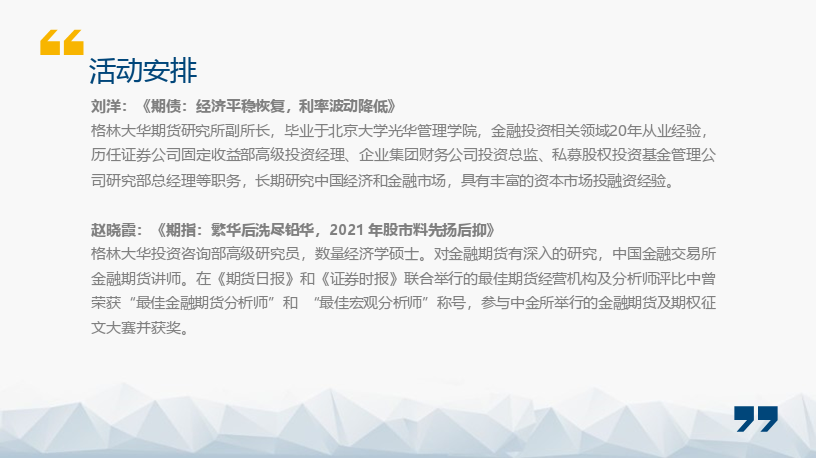 【免责声明】1、本视频所提供的分析建议所依据的信息,均来源于交易所、媒体和资讯公司等发布的公开资料或通过合法授权渠道向发布者取得的资讯,我们力求分析及建议内容的客观、公正,研究方法专业审谨,分析结论合理,但公司对信息来源的准确性和完整性不作任何保证,也不保证所依据的信息和建议不会发生任何变化。2、因研究分析意见存在一定的局限性,本视频所提供的分析和建议内容仅供参考,不构成对您的任何投资建议及入市依据。您应当自主做出交易决策,独自承担交易结果,据此入市者,我公司不承担任何责任。3、因互联网软硬件设备故障、失灵,不可抗力造成的全部或者部分视频中断、延迟、遗留、误导或造成的视频传输或存储上的错误,我公司均不承担责任。4、未经本公司授权、不得随意下载、复制、传播本视频及网页的所有材料和内容。5、如果您打开本页面或点击观看本视频及直接和间接使用上述资料,我们均视为您自愿接受并完全同意本声明。