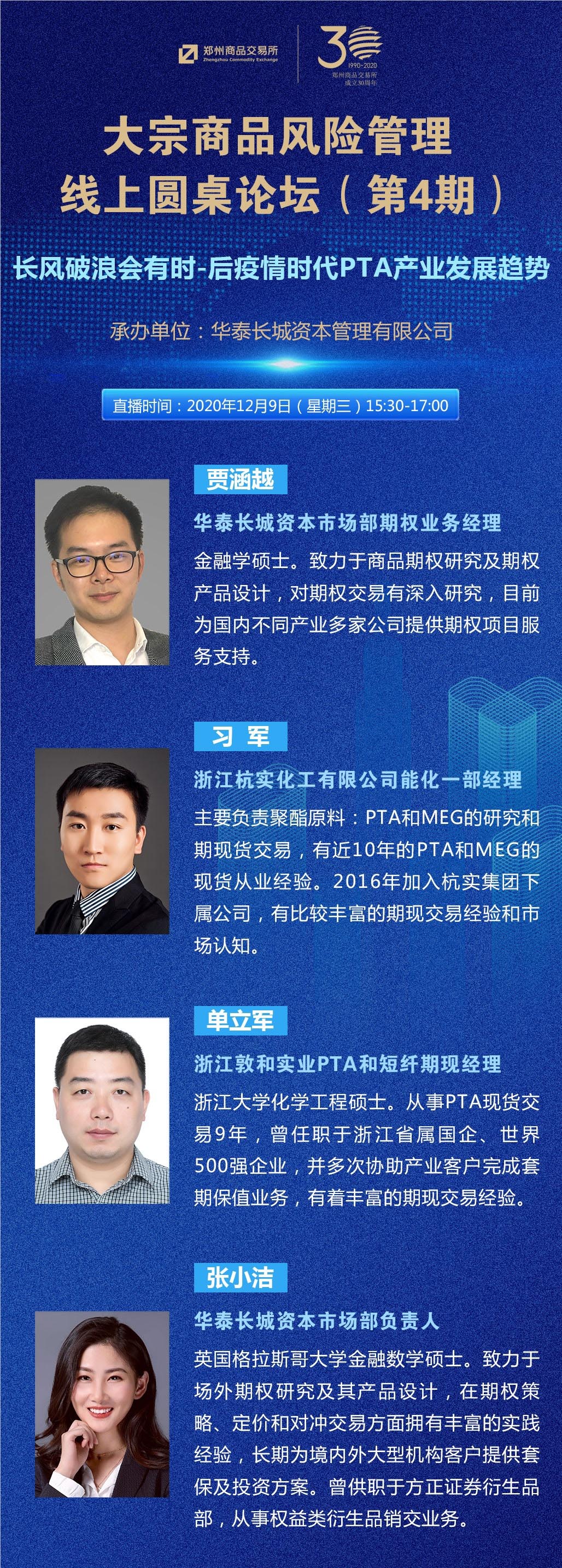 【郑商衍生品】大宗商品风险管理线上圆桌论坛(第四期)疫情时代PTA发展趋势