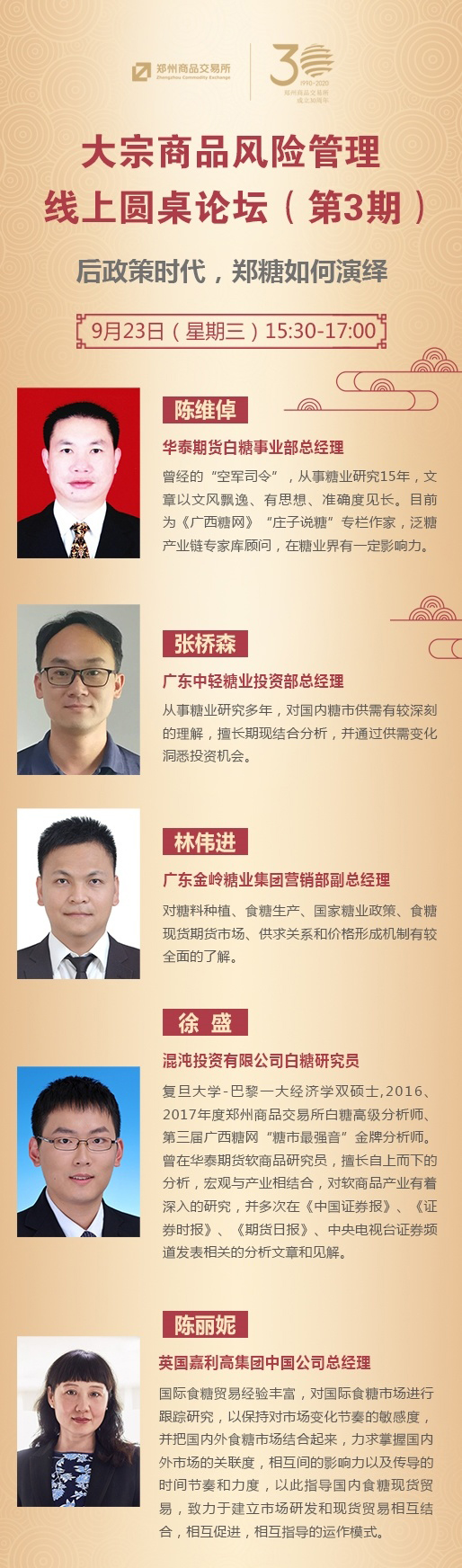 【郑商衍生品】大宗商品风险管理线上圆桌论坛(第3期)—后政策时代郑糖如何演